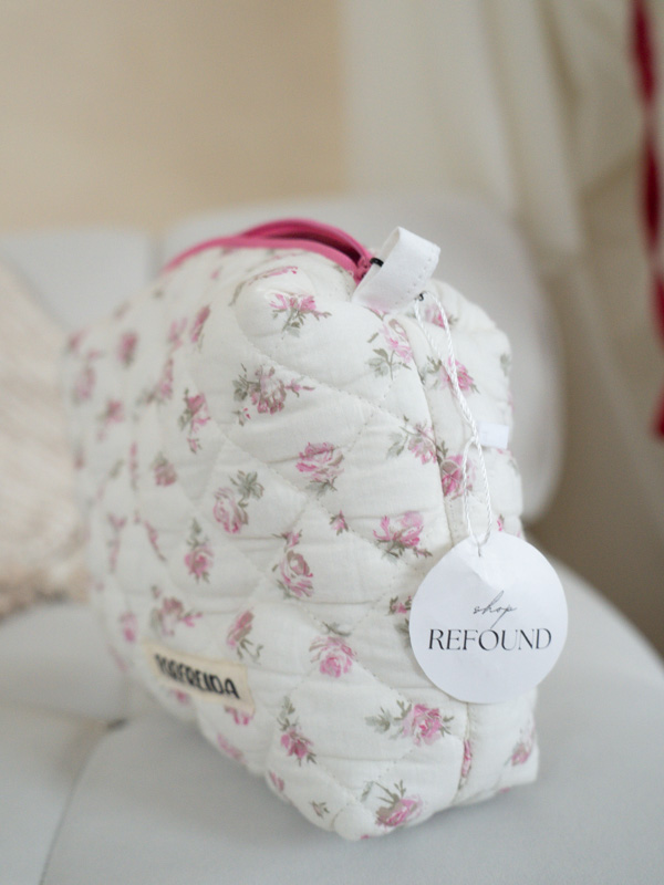 This ForFreida handmade makeup bag is a thoughtfully crafted, one-of-a-kind accessory designed for both beauty and function. Made entirely by hand using sustainable materials, this bag features a charming quilted floral exterior paired with a coordinating interior pattern for a refined, artisanal finish. Each ForFreida piece is uniquely made, ensuring no two bags are exactly alike.