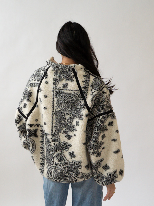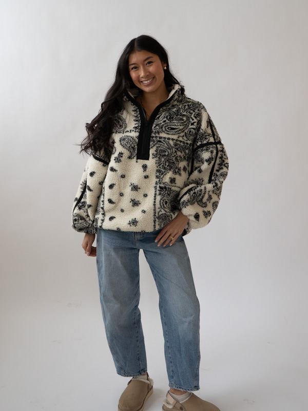 Paisley Cream Black Sherpa Pull Over Half Zip
