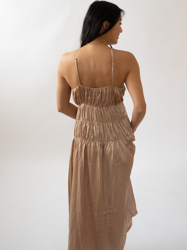 REFOUND Boutique Champagne Cinch Maxi Halter Dress Size Medium