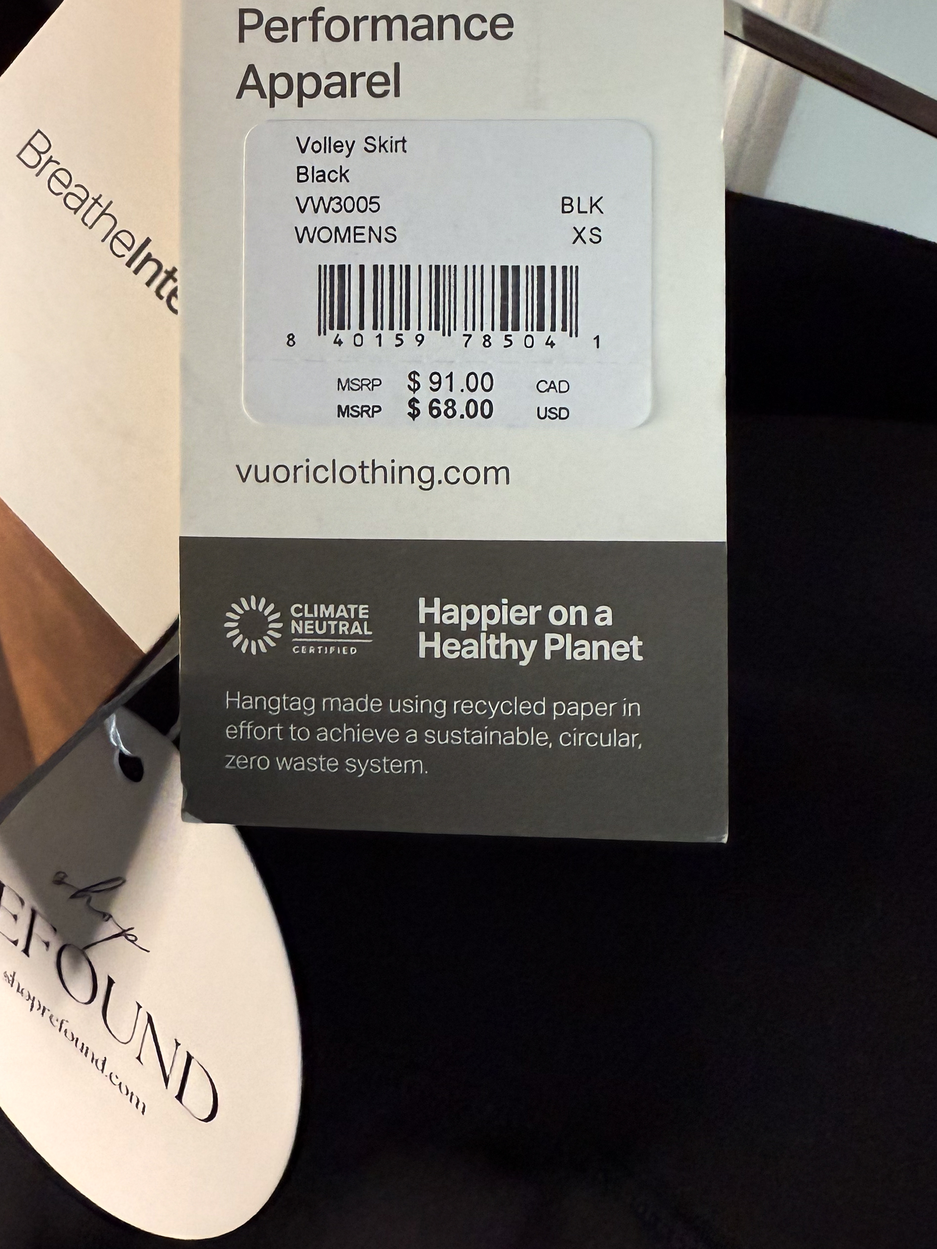 REFOUND Vuori Volley Black Skirt NWT SIZE XS