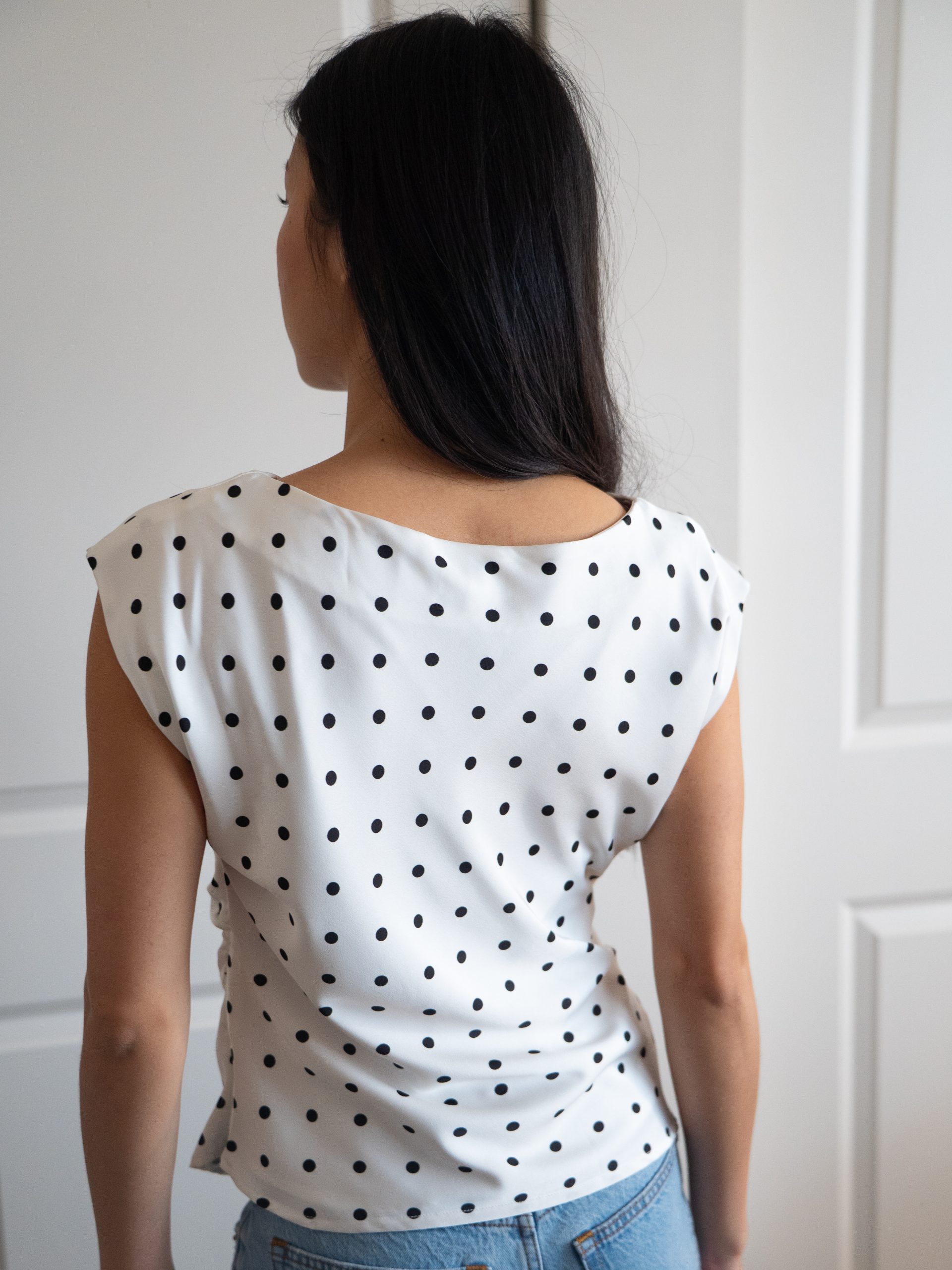 Be the first to review “Sloan Satin Boat Neck Polka Dot Top”